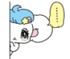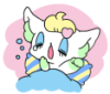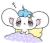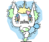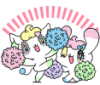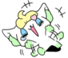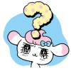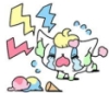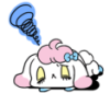 Description: Pero pero sparkles character laying on the ground, stumped or frustrated