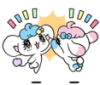 Description: Pero pero sparkles character looking at a plate of food, drooling